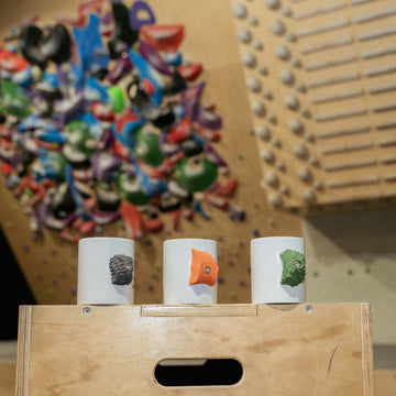 Mit dem Climbing Mug verwandeln Sie Ihren Morgenkaffee in einen Klettermoment. Jedes Modell ist mit einem echten Klettergriff ausgestattet, der auf einen 33 cl Porzellanbecher geschraubt wird.