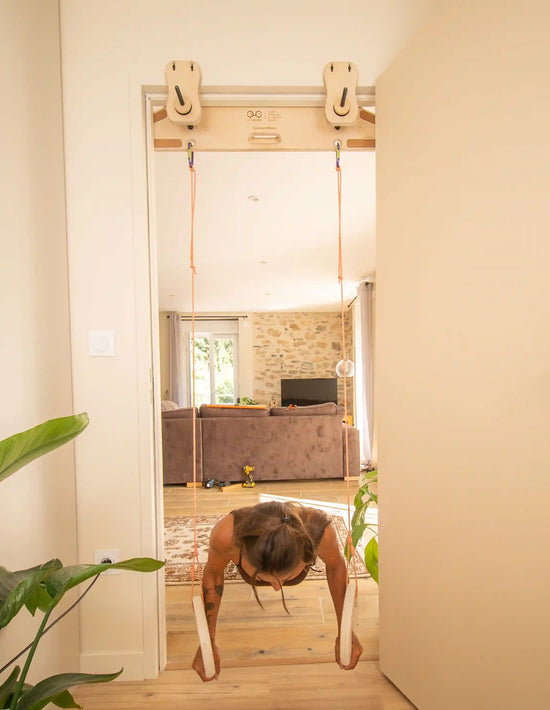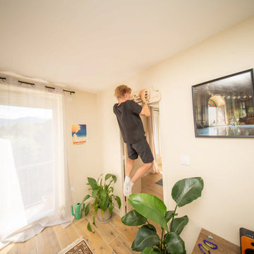 Die SandwichBase ist die clevere Halterung, um einen Trainingsbalken zu installieren, ohne die Wände zu durchbohren. Sein Holz-Stahl-System nutzt denBogen aus: Einmal in deinen Türrahmen geklemmt, ist der Halt stabil und sicher, auch bei dynamischen Klimmzügen.