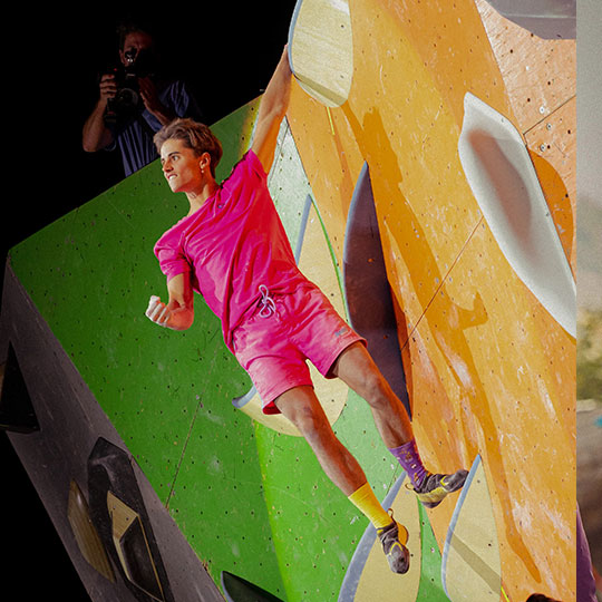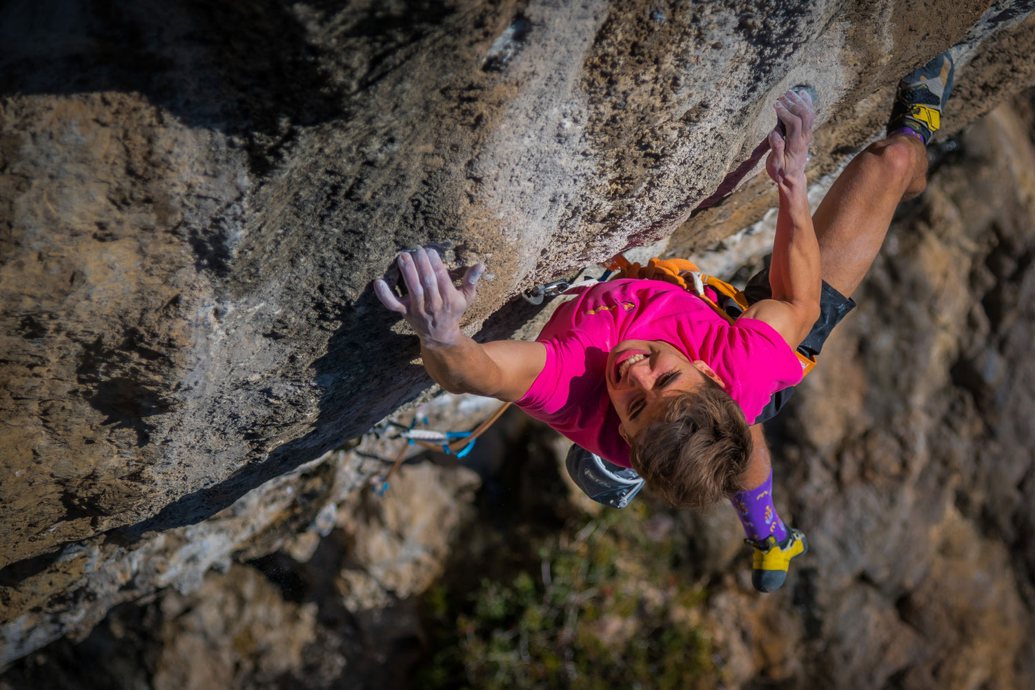 The climbing sock! While most pro climbers decide to go sockless, Pierre keeps them on his feet and puts them on full display!
