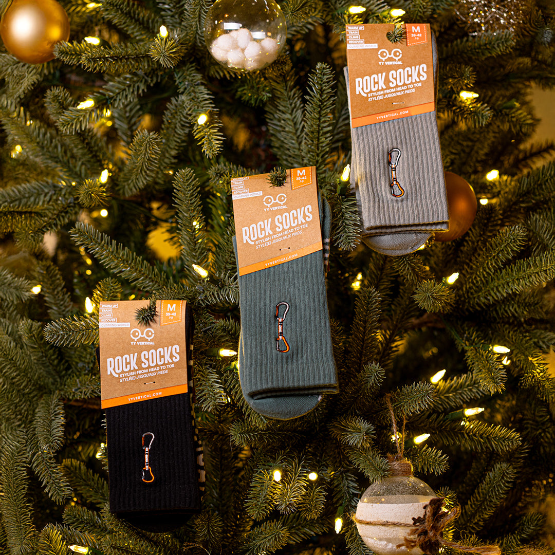 Avec trois tailles pour convenir à tous, les Rock Socks sont l’accessoire parfait pour allier style et confort avec une touche de grimpe.