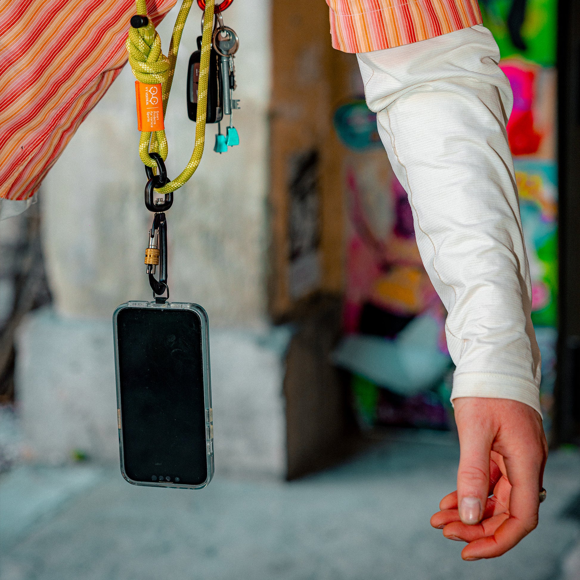 Le VerticalLeash est l’accessoire lifestyle qui te simplifie la vie quand tu bouges avec ton matos… ou juste ton téléphone. Il te permet d’accrocher et sécuriser des objets du quotidien (téléphone, chaussons, clé, petit accessoire), pour garder les mains libres et éviter d’oublier ou de faire tomber tes essentiels.